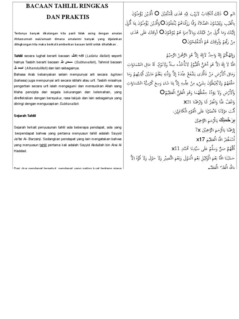 Bacaan Tahlil Ringkas Pdf - Doa Arwah Ringkas Bahasa Melayu Dakwah Islami